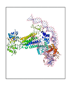 CAUTION: The amplitude range presented in these views corresponds to the highest (DQMAX) and lowest (DQMIN) perturbations chosen for this mode. Secondary structures can break down (and thus disappear from the animation) if the applied amplitudes are too large for Molscript to identify them. The choice of the amplitude is not a NMA result, but has to be done by the user on physical grounds. To change the amplitude range, you can recompute the animation of the desired mode by using the "Compute additional perturbed models with elNémo" section on the results page of your job.