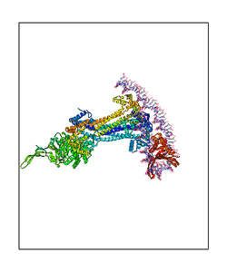 CAUTION: The amplitude range presented in these views corresponds to the highest (DQMAX) and lowest (DQMIN) perturbations chosen for this mode. Secondary structures can break down (and thus disappear from the animation) if the applied amplitudes are too large for Molscript to identify them. The choice of the amplitude is not a NMA result, but has to be done by the user on physical grounds. To change the amplitude range, you can recompute the animation of the desired mode by using the "Compute additional perturbed models with elNémo" section on the results page of your job.