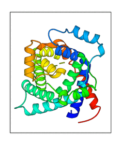 These views are prepared from three orthologuous viewpoints with MolScript. Secondary structures are determined from the C-alpha atom positions of your protein (N-terminal blue, C-terminal red).