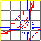 This matrix displays the maximum distance fluctuations between all pairs of CA atoms and between the two extreme conformations that were computed for this mode (DQMIN/DQMAX). Distance increases are plotted in blue and decreases in red for the strongest 10% of the residue pair distance changes. Every pixel corresponds to a single residue. Grey lines are drawn every 10 residues, yellow lines every 100 residues (counting from the upper left corner).