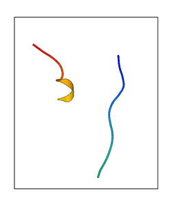 CAUTION: The amplitude range presented in these views corresponds to the highest (DQMAX) and lowest (DQMIN) perturbations chosen for this mode. Secondary structures can break down (and thus disappear from the animation) if the applied amplitudes are too large for Molscript to identify them. The choice of the amplitude is not a NMA result, but has to be done by the user on physical grounds. To change the amplitude range, you can recompute the animation of the desired mode by using the "Compute additional perturbed models with elNémo" section on the results page of your job.