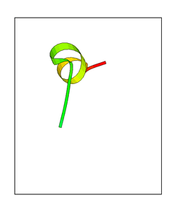 CAUTION: The amplitude range presented in these views corresponds to the highest (DQMAX) and lowest (DQMIN) perturbations chosen for this mode. Secondary structures can break down (and thus disappear from the animation) if the applied amplitudes are too large for Molscript to identify them. The choice of the amplitude is not a NMA result, but has to be done by the user on physical grounds. To change the amplitude range, you can recompute the animation of the desired mode by using the "Compute additional perturbed models with elNémo" section on the results page of your job.