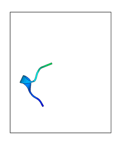 CAUTION: The amplitude range presented in these views corresponds to the highest (DQMAX) and lowest (DQMIN) perturbations chosen for this mode. Secondary structures can break down (and thus disappear from the animation) if the applied amplitudes are too large for Molscript to identify them. The choice of the amplitude is not a NMA result, but has to be done by the user on physical grounds. To change the amplitude range, you can recompute the animation of the desired mode by using the "Compute additional perturbed models with elNémo" section on the results page of your job.