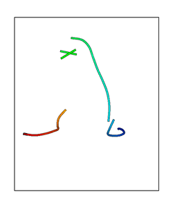 These views are prepared from three orthologuous viewpoints with MolScript. Secondary structures are determined from the C-alpha atom positions of your protein (N-terminal blue, C-terminal red).