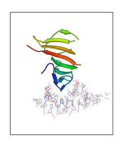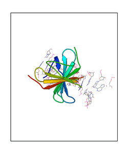 CAUTION: The amplitude range presented in these views corresponds to the highest (DQMAX) and lowest (DQMIN) perturbations chosen for this mode. Secondary structures can break down (and thus disappear from the animation) if the applied amplitudes are too large for Molscript to identify them. The choice of the amplitude is not a NMA result, but has to be done by the user on physical grounds. To change the amplitude range, you can recompute the animation of the desired mode by using the "Compute additional perturbed models with elNémo" section on the results page of your job.
