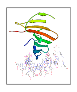 CAUTION: The amplitude range presented in these views corresponds to the highest (DQMAX) and lowest (DQMIN) perturbations chosen for this mode. Secondary structures can break down (and thus disappear from the animation) if the applied amplitudes are too large for Molscript to identify them. The choice of the amplitude is not a NMA result, but has to be done by the user on physical grounds. To change the amplitude range, you can recompute the animation of the desired mode by using the "Compute additional perturbed models with elNémo" section on the results page of your job.