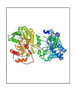 These views are prepared from three orthologuous viewpoints with MolScript. Secondary structures are determined from the C-alpha atom positions of your protein (N-terminal blue, C-terminal red).