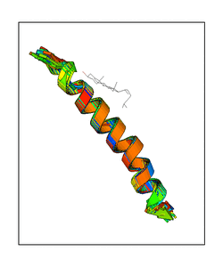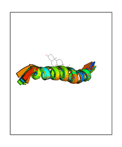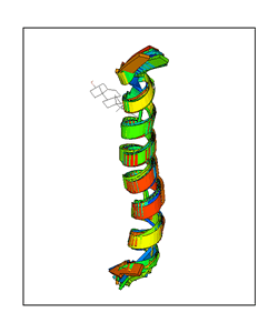 CAUTION: The amplitude range presented in these views corresponds to the highest (DQMAX) and lowest (DQMIN) perturbations chosen for this mode. Secondary structures can break down (and thus disappear from the animation) if the applied amplitudes are too large for Molscript to identify them. The choice of the amplitude is not a NMA result, but has to be done by the user on physical grounds. To change the amplitude range, you can recompute the animation of the desired mode by using the "Compute additional perturbed models with elNémo" section on the results page of your job.