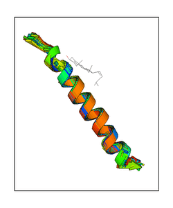 CAUTION: The amplitude range presented in these views corresponds to the highest (DQMAX) and lowest (DQMIN) perturbations chosen for this mode. Secondary structures can break down (and thus disappear from the animation) if the applied amplitudes are too large for Molscript to identify them. The choice of the amplitude is not a NMA result, but has to be done by the user on physical grounds. To change the amplitude range, you can recompute the animation of the desired mode by using the "Compute additional perturbed models with elNémo" section on the results page of your job.