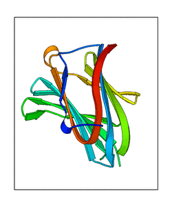 These views are prepared from three orthologuous viewpoints with MolScript. Secondary structures are determined from the C-alpha atom positions of your protein (N-terminal blue, C-terminal red).