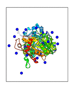 CAUTION: The amplitude range presented in these views corresponds to the highest (DQMAX) and lowest (DQMIN) perturbations chosen for this mode. Secondary structures can break down (and thus disappear from the animation) if the applied amplitudes are too large for Molscript to identify them. The choice of the amplitude is not a NMA result, but has to be done by the user on physical grounds. To change the amplitude range, you can recompute the animation of the desired mode by using the "Compute additional perturbed models with elNémo" section on the results page of your job.