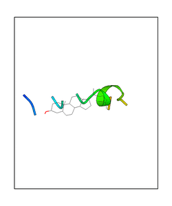 These views are prepared from three orthologuous viewpoints with MolScript. Secondary structures are determined from the C-alpha atom positions of your protein (N-terminal blue, C-terminal red).