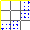 This matrix displays the maximum distance fluctuations between all pairs of CA atoms and between the two extreme conformations that were computed for this mode (DQMIN/DQMAX). Distance increases are plotted in blue and decreases in red for the strongest 10% of the residue pair distance changes. Every pixel corresponds to a single residue. Grey lines are drawn every 10 residues, yellow lines every 100 residues (counting from the upper left corner).
