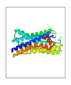 These views are prepared from three orthologuous viewpoints with MolScript. Secondary structures are determined from the C-alpha atom positions of your protein (N-terminal blue, C-terminal red).