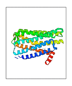 These views are prepared from three orthologuous viewpoints with MolScript. Secondary structures are determined from the C-alpha atom positions of your protein (N-terminal blue, C-terminal red).