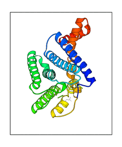 These views are prepared from three orthologuous viewpoints with MolScript. Secondary structures are determined from the C-alpha atom positions of your protein (N-terminal blue, C-terminal red).
