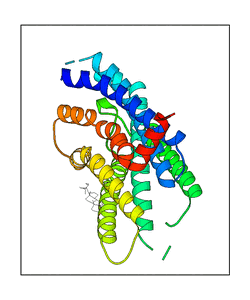 These views are prepared from three orthologuous viewpoints with MolScript. Secondary structures are determined from the C-alpha atom positions of your protein (N-terminal blue, C-terminal red).