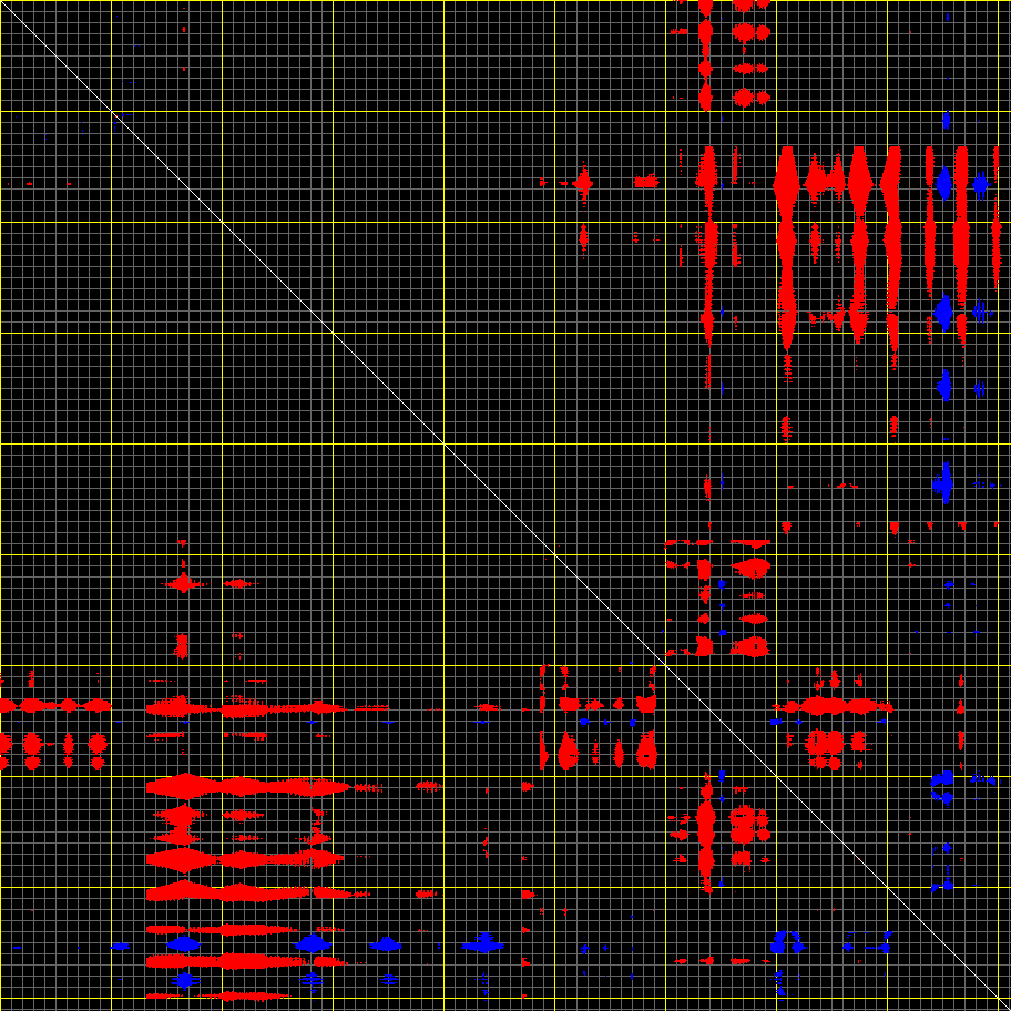 Every pixel corresponds to a single residue. Grey lines are drawn every