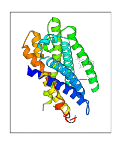 These views are prepared from three orthologuous viewpoints with MolScript. Secondary structures are determined from the C-alpha atom positions of your protein (N-terminal blue, C-terminal red).