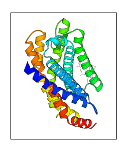 These views are prepared from three orthologuous viewpoints with MolScript. Secondary structures are determined from the C-alpha atom positions of your protein (N-terminal blue, C-terminal red).