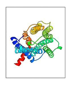 These views are prepared from three orthologuous viewpoints with MolScript. Secondary structures are determined from the C-alpha atom positions of your protein (N-terminal blue, C-terminal red).