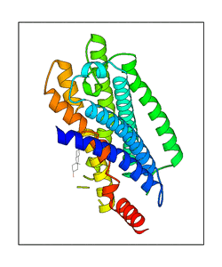 These views are prepared from three orthologuous viewpoints with MolScript. Secondary structures are determined from the C-alpha atom positions of your protein (N-terminal blue, C-terminal red).
