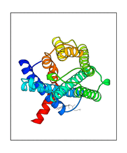 These views are prepared from three orthologuous viewpoints with MolScript. Secondary structures are determined from the C-alpha atom positions of your protein (N-terminal blue, C-terminal red).