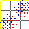 This matrix displays the maximum distance fluctuations between all pairs of CA atoms and between the two extreme conformations that were computed for this mode (DQMIN/DQMAX). Distance increases are plotted in blue and decreases in red for the strongest 10% of the residue pair distance changes. Every pixel corresponds to a single residue. Grey lines are drawn every 10 residues, yellow lines every 100 residues (counting from the upper left corner).