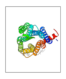These views are prepared from three orthologuous viewpoints with MolScript. Secondary structures are determined from the C-alpha atom positions of your protein (N-terminal blue, C-terminal red).