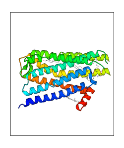 These views are prepared from three orthologuous viewpoints with MolScript. Secondary structures are determined from the C-alpha atom positions of your protein (N-terminal blue, C-terminal red).