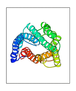 These views are prepared from three orthologuous viewpoints with MolScript. Secondary structures are determined from the C-alpha atom positions of your protein (N-terminal blue, C-terminal red).