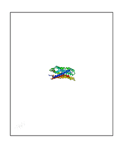 CAUTION: The amplitude range presented in these views corresponds to the highest (DQMAX) and lowest (DQMIN) perturbations chosen for this mode. Secondary structures can break down (and thus disappear from the animation) if the applied amplitudes are too large for Molscript to identify them. The choice of the amplitude is not a NMA result, but has to be done by the user on physical grounds. To change the amplitude range, you can recompute the animation of the desired mode by using the "Compute additional perturbed models with elNémo" section on the results page of your job.