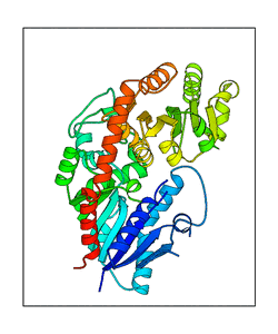 These views are prepared from three orthologuous viewpoints with MolScript. Secondary structures are determined from the C-alpha atom positions of your protein (N-terminal blue, C-terminal red).