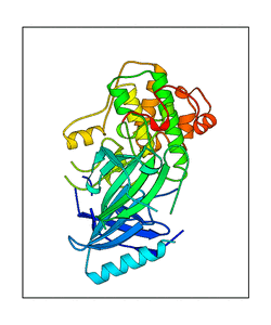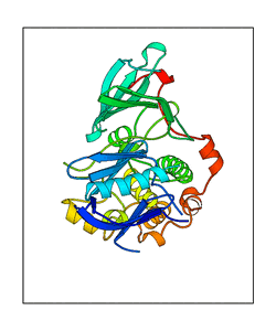 These views are prepared from three orthologuous viewpoints with MolScript. Secondary structures are determined from the C-alpha atom positions of your protein (N-terminal blue, C-terminal red).