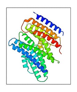 These views are prepared from three orthologuous viewpoints with MolScript. Secondary structures are determined from the C-alpha atom positions of your protein (N-terminal blue, C-terminal red).