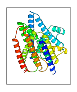 These views are prepared from three orthologuous viewpoints with MolScript. Secondary structures are determined from the C-alpha atom positions of your protein (N-terminal blue, C-terminal red).