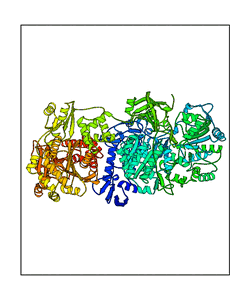 These views are prepared from three orthologuous viewpoints with MolScript. Secondary structures are determined from the C-alpha atom positions of your protein (N-terminal blue, C-terminal red).