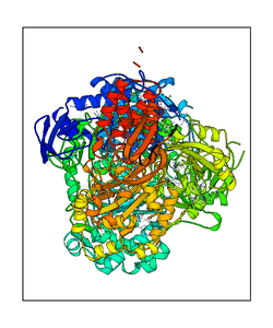 These views are prepared from three orthologuous viewpoints with MolScript. Secondary structures are determined from the C-alpha atom positions of your protein (N-terminal blue, C-terminal red).