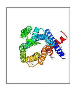 These views are prepared from three orthologuous viewpoints with MolScript. Secondary structures are determined from the C-alpha atom positions of your protein (N-terminal blue, C-terminal red).
