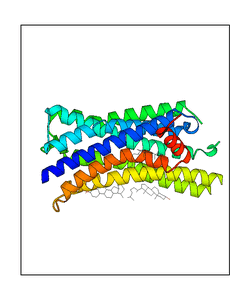 These views are prepared from three orthologuous viewpoints with MolScript. Secondary structures are determined from the C-alpha atom positions of your protein (N-terminal blue, C-terminal red).