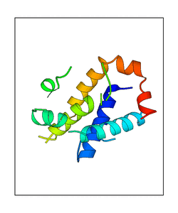 These views are prepared from three orthologuous viewpoints with MolScript. Secondary structures are determined from the C-alpha atom positions of your protein (N-terminal blue, C-terminal red).