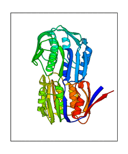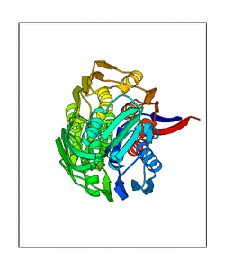 These views are prepared from three orthologuous viewpoints with MolScript. Secondary structures are determined from the C-alpha atom positions of your protein (N-terminal blue, C-terminal red).