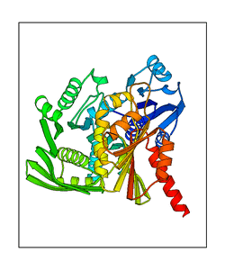 These views are prepared from three orthologuous viewpoints with MolScript. Secondary structures are determined from the C-alpha atom positions of your protein (N-terminal blue, C-terminal red).