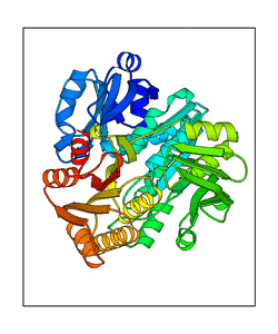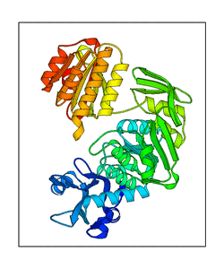 These views are prepared from three orthologuous viewpoints with MolScript. Secondary structures are determined from the C-alpha atom positions of your protein (N-terminal blue, C-terminal red).