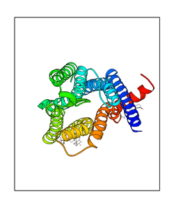 These views are prepared from three orthologuous viewpoints with MolScript. Secondary structures are determined from the C-alpha atom positions of your protein (N-terminal blue, C-terminal red).