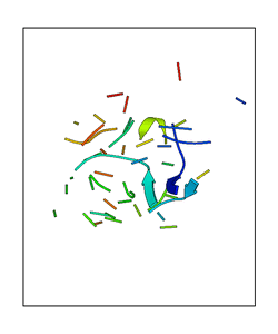 CAUTION: The amplitude range presented in these views corresponds to the highest (DQMAX) and lowest (DQMIN) perturbations chosen for this mode. Secondary structures can break down (and thus disappear from the animation) if the applied amplitudes are too large for Molscript to identify them. The choice of the amplitude is not a NMA result, but has to be done by the user on physical grounds. To change the amplitude range, you can recompute the animation of the desired mode by using the "Compute additional perturbed models with elNémo" section on the results page of your job.