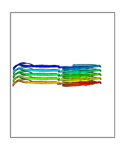 CAUTION: The amplitude range presented in these views corresponds to the highest (DQMAX) and lowest (DQMIN) perturbations chosen for this mode. Secondary structures can break down (and thus disappear from the animation) if the applied amplitudes are too large for Molscript to identify them. The choice of the amplitude is not a NMA result, but has to be done by the user on physical grounds. To change the amplitude range, you can recompute the animation of the desired mode by using the "Compute additional perturbed models with elNémo" section on the results page of your job.