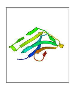 These views are prepared from three orthologuous viewpoints with MolScript. Secondary structures are determined from the C-alpha atom positions of your protein (N-terminal blue, C-terminal red).