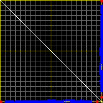 This matrix displays the maximum distance fluctuations between all pairs of CA atoms and between the two extreme conformations that were computed for this mode (DQMIN/DQMAX). Distance increases are plotted in blue and decreases in red for the strongest 10% of the residue pair distance changes. Every pixel corresponds to a single residue. Grey lines are drawn every 10 residues, yellow lines every 100 residues (counting from the upper left corner).