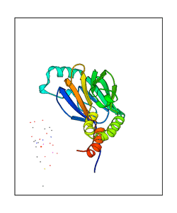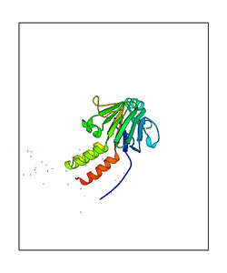 CAUTION: The amplitude range presented in these views corresponds to the highest (DQMAX) and lowest (DQMIN) perturbations chosen for this mode. Secondary structures can break down (and thus disappear from the animation) if the applied amplitudes are too large for Molscript to identify them. The choice of the amplitude is not a NMA result, but has to be done by the user on physical grounds. To change the amplitude range, you can recompute the animation of the desired mode by using the "Compute additional perturbed models with elNémo" section on the results page of your job.